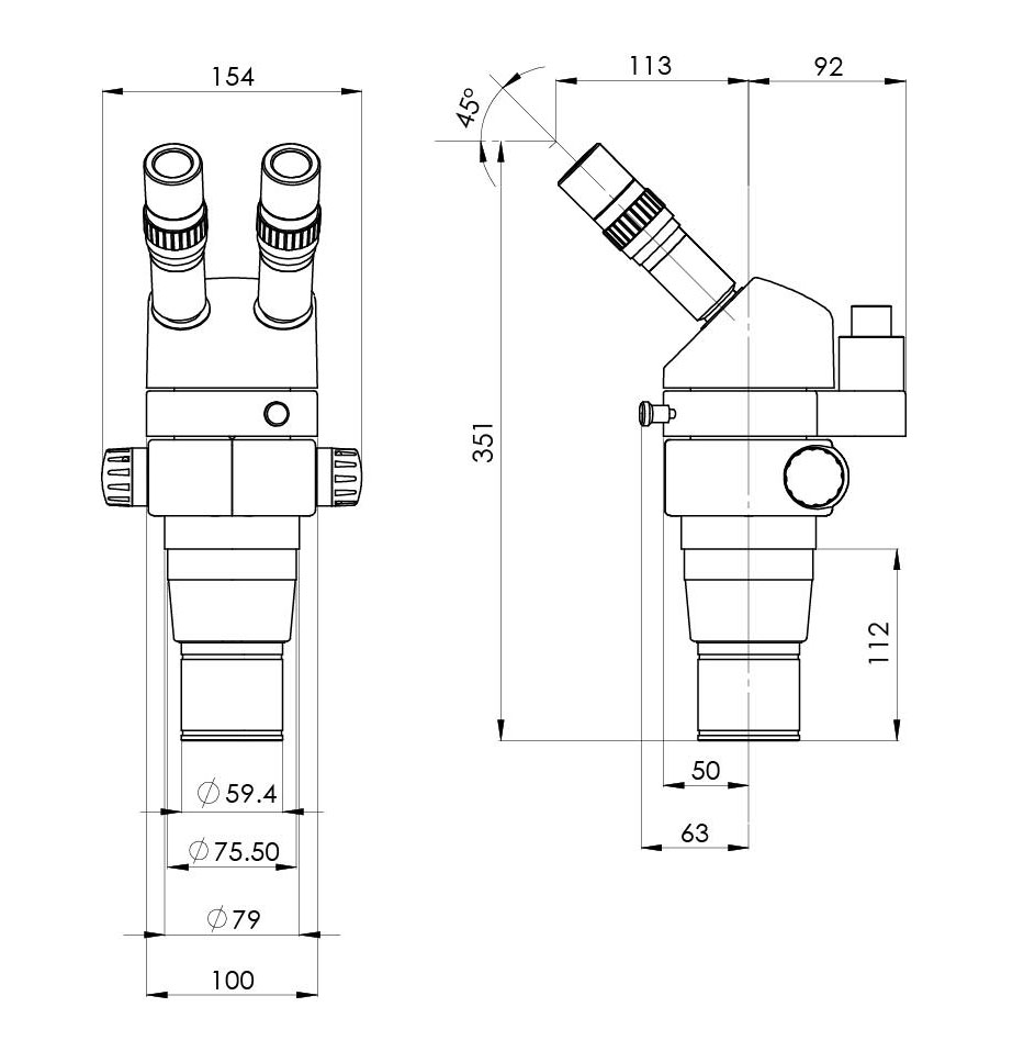 瞳距調(diào)節(jié)范圍(用10X 目鏡)