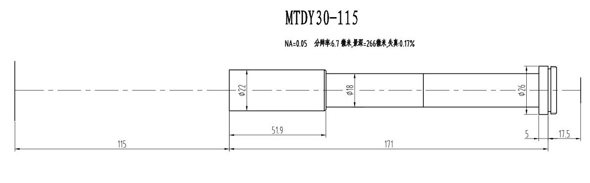 2. MTDY物方遠心物鏡型號規格匯總(工作距離為115mm):
