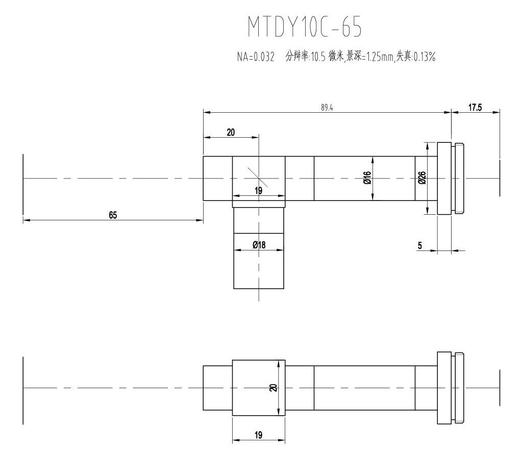 1. MTDY物方遠心物鏡型號規格匯總(工作距離為65mm):
