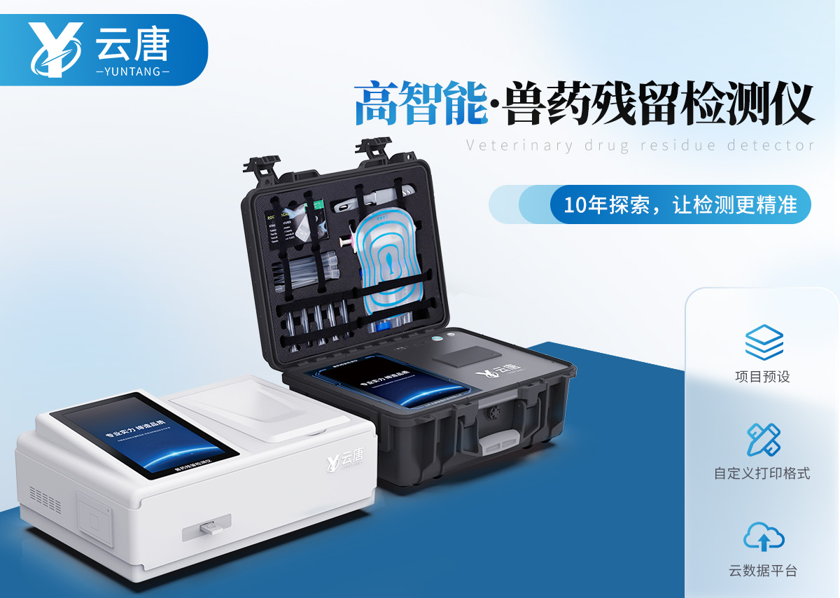 山東云唐智能科技有限公司生產的高智能獸藥殘留檢測儀可快速檢測瘦肉精激素類食品安全項目,包含鹽酸克倫特羅、沙丁胺醇、萊克多巴胺、己烯雌酚,獸藥殘留、抗生素類殘留、真菌毒素類殘留、動物疫病類等檢測。