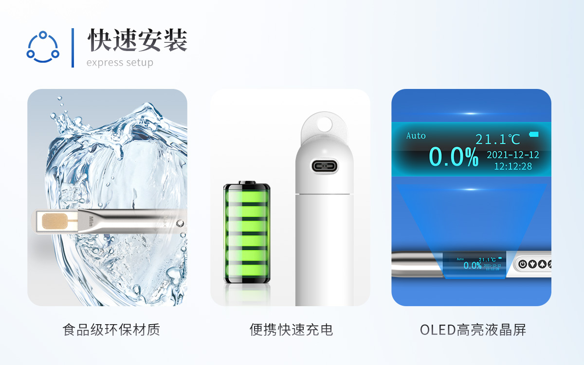 ■沒有二次污染 探頭所選材質均為食品級環保材質,不會產生二次污染。